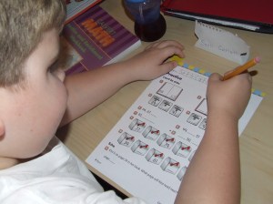 This is one of Seth’s Math workbook pages. The first few lessons are mostly review from last year. Seth wanted to try using a mechanical pencil. He did very well.