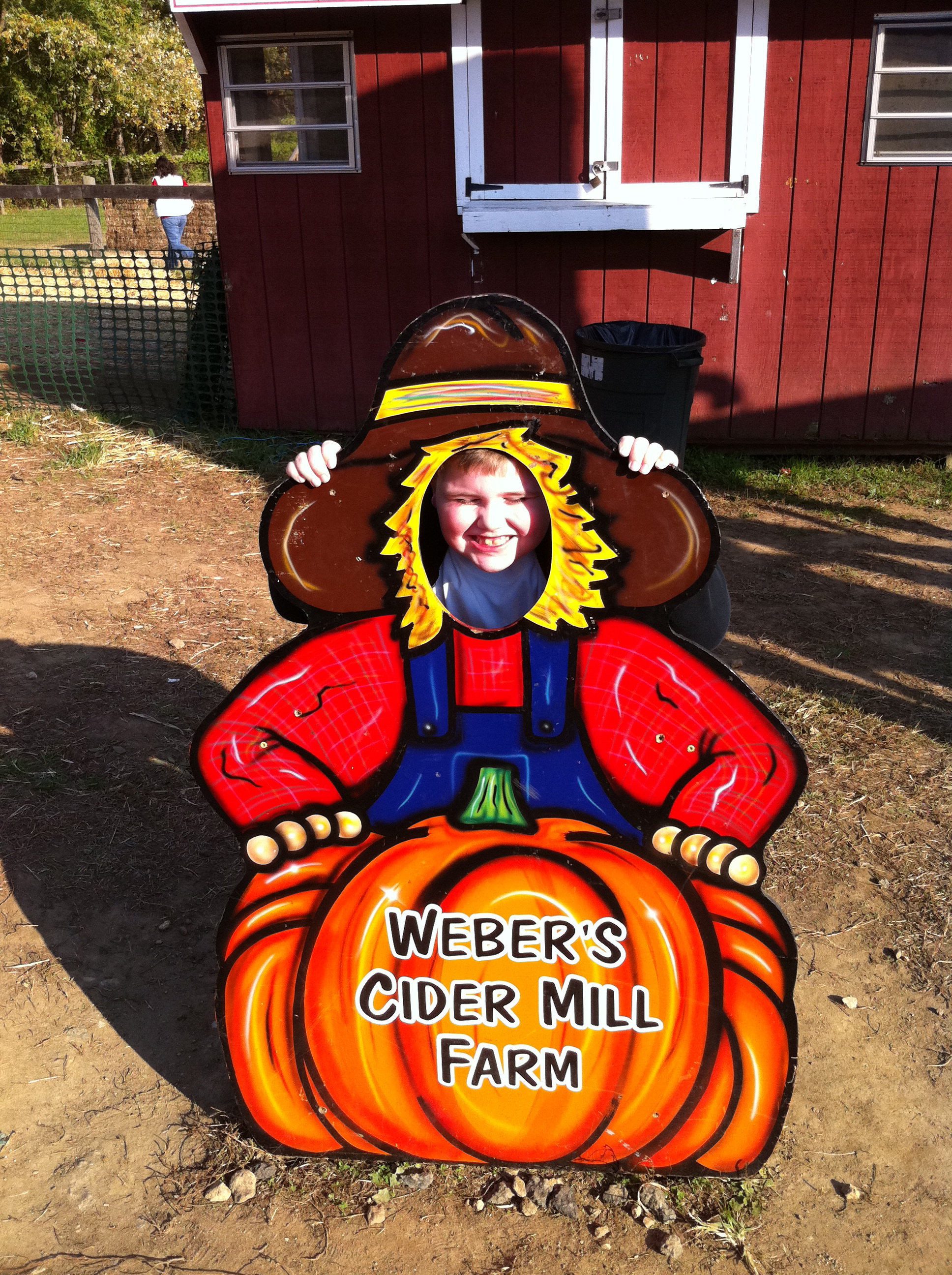 I think somewhere written in The Laws of Being a Good Parent there is a yearly tradition that must be upheld in the Fall called: Visiting the Pumpkin Farm. This year Scott and I decided to take Seth to Weber’s Farm. We love Weber’s because there is so much for the kids and the parents to do together! And of course there is awesome apple cider, carmel apples, and this year we discovered the pit turkey! YUM-O!