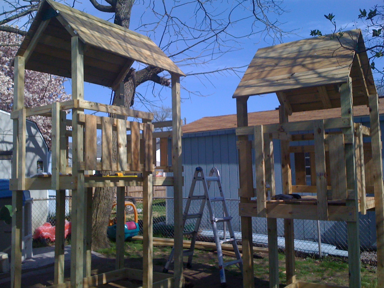 The towers you see above were contructed on our driveway, then they had to be moved a few feet to the play ground area. A few men with muscles helped us move the first smaller tower. When it was time to move the larger tower, we were stuck. Scott and I couldn’t move it by ourselves and our muscle men had left for the evening. I picked up my cell phone and dialed my friend from high school. I quickly learned he and his wife were in our area, but Scott did not want to impose so he told me to tell them we had it and that it would all work out. 10 minutes later my dear friends pull up in a huge diesel truck smiling like the cat that ate the canary. I said, “You guys, we told you it was all alright and we could move the tower.” (Which was a big fat lie, and they knew it, God forgive me). They laughed and of course I gave them both huge hugs. It was great to see them. Without missing a beat my high school friend picked up the entire large tower on his shoulders and moved the entire structure, by himself. He was a football player in H.S. We all just stood there with our jaws on the ground. I don’t even think he broke a sweat. His wife is also very dear to our family and it was wonderful to see them both, and wonderful that we can count on them, and I hope they know they can count on us too. Thanks R and L, we love you guys.