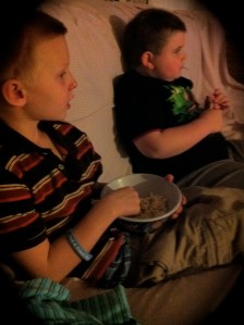 Our neighbors are all awesome. Since Tommy wanted to visit I asked his mom if he could stay for movie night. Then she offered to share their awesome kettle corn popcorn that they purchased from our other dear neighbors for Boy Scouts (we bought the chocolate covered popcorn, next year I am buying kettle corn too, it was so good). Thank you Tommy for bringing the popcorn!