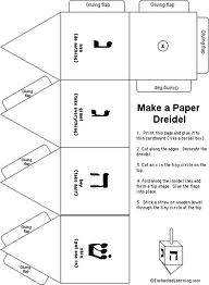 We also played Spin the Dreidel, there is an inscription on each side when combined it stands for – A GREAT MIRACLE HAPPENED. Depending on what letter faces up after the Dreidel stops spinning determines what each player must do to play the game. For example if the letter facing up reads “Nun” you do nothing, or if you spin and the Dreidel lands on “Hay” you get to keep half of the goodies in the center of the table. Some people play using chocolate filled gold coins. We played using candy chocolate kisses. You can google How to play Dreidel for more information. There is also a great make your own Dreidel craft picture below from enchantedlearning.com. By the way Seth won all the kisses, fair and square.