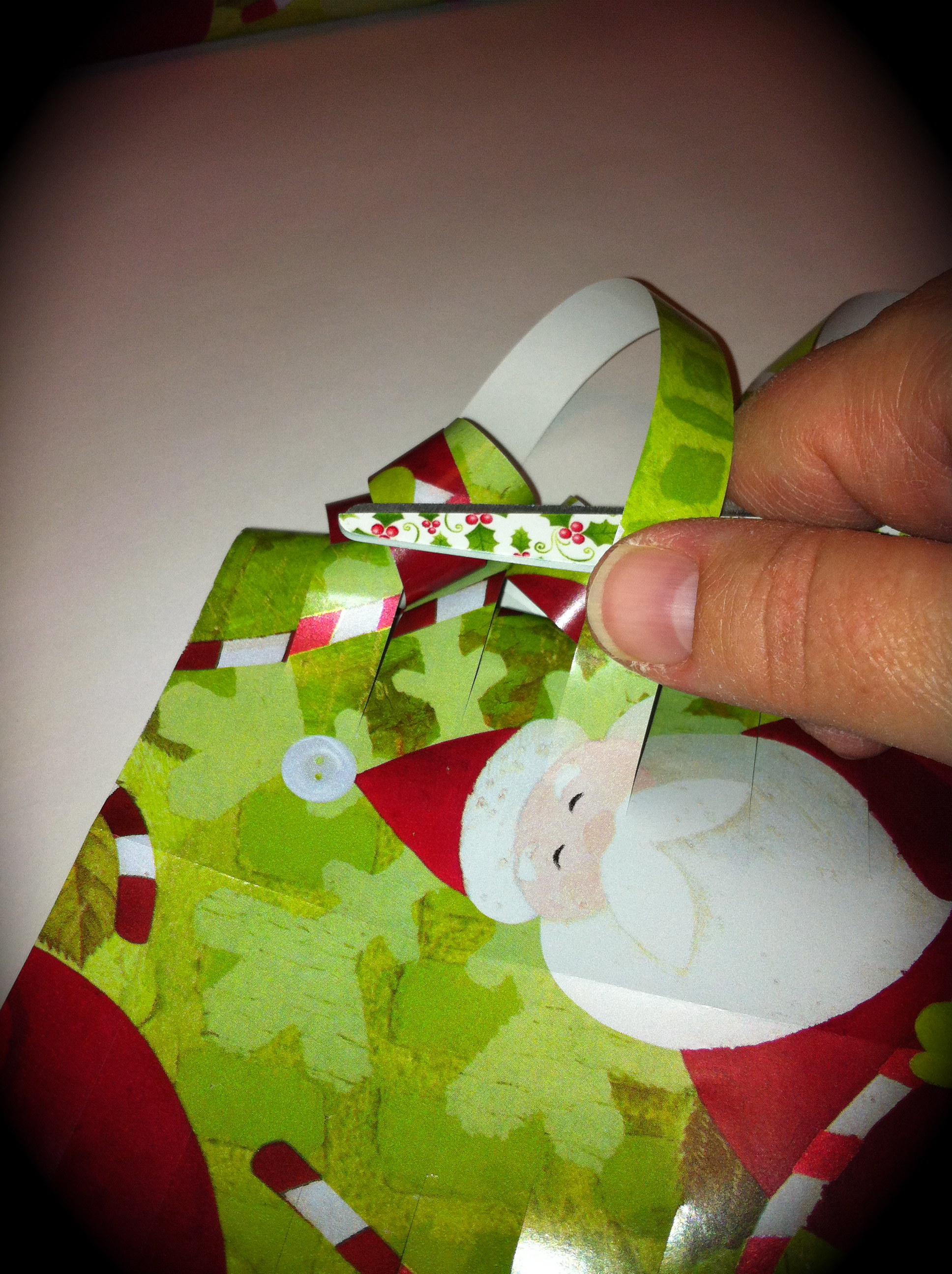 One year at Christmas time I complemented the bows on the presents she had wrapped. She smiled then shared with me that she had made them herself. Then before I knew it we were in her living room and she was sharing with me step by step how to create these cool wrapping paper bows. I do not know where she learned this technique, and I would like to share this with you.