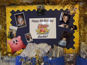 This year Seth decided he wanted to have a Birthday Party with a Kirby theme. We normally just have a small gathering of family and friends not a big shindig, but this year we decided to have a big party. Mainly because with a new baby on the way we knew things would be changing and we wanted to do something extra special for Seth.