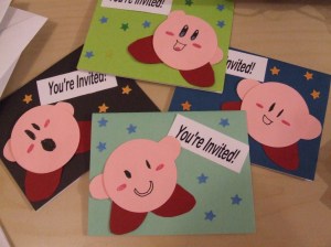 You are so right! There’s a business opportunity for someone out there. My son wants a Kirby themed birthday party and I couldn’t find anything for favors – decorations – prizes – etc. Thank you so much for the inspiration. If anyone else is trying this theme (there have to be others!) there is one place you can take a minor short cut. To save time on invitations (yours were lovely by the way) you can actually get ones pre-made on ebay. Just type in Kirby & birthday & invitations and it brings up awesome ticket style ones that they will customize for you. They send electronic copy and you get them printed at walmart (or wherever) Less personal maybe – but also less work! Check it out.