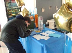 During the party we were able to use the Video Voting Game System as well. Each guest sat in a theater seat with a remote voting device. We then asked questions with Seth’s party theme and about Seth for the guests to answer, it was multiple choice. They used the voting remotes to answer the questions. Everyone loved playing the game.