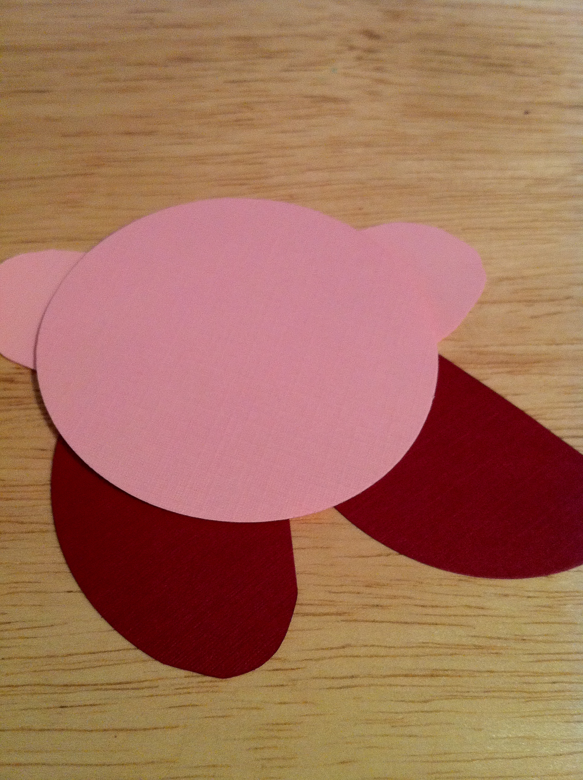 Next I used the circle cutter to cut another circle from red card stock for Kirby's feet.